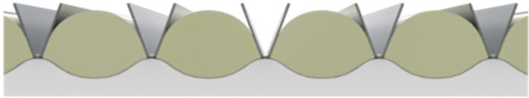 4) Dělení/tvarování (tzv. systém Alveoform - bagetová mříž + bagetová základová deska) - formování do konečného tvaru baget již při procesu dělení těsta